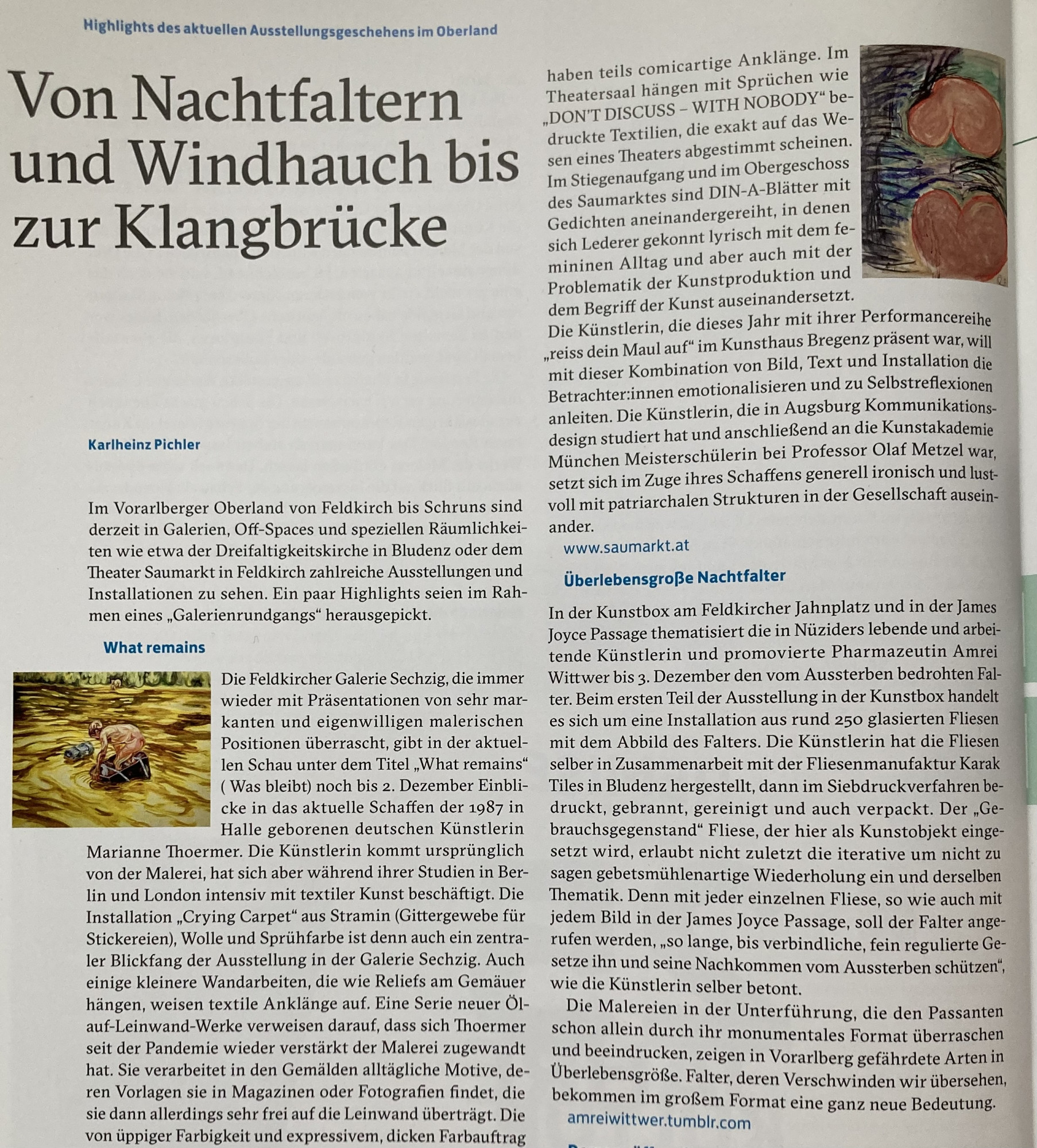 Auf Augenhöhe mit den Nachtfaltern. Sieglinde Wöhrer, Neue Vorarlberger Tageszeitung, 29.09.2023